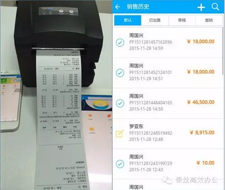 整个流程下来大约一分钟。小票让顾客带走,电子账单保留在销售单里,小美可以随时随地查看自己的单据。